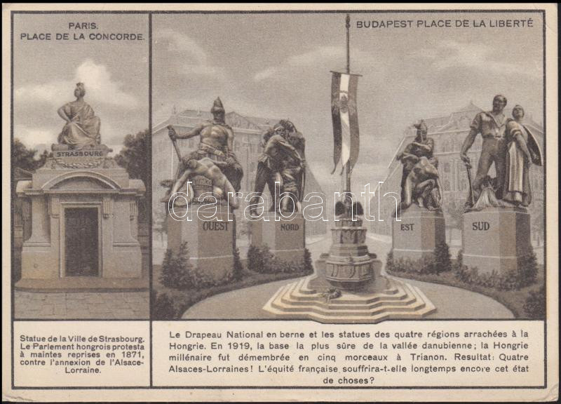 Beschreibung: Szabadság tér irredenta szobornégyes, francia nyelvű irredenta lap (EK)