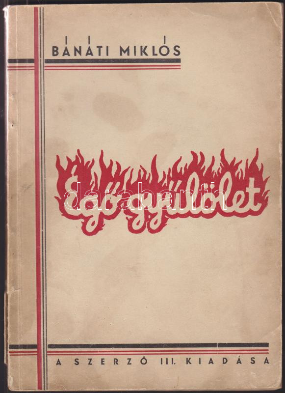 1944 Bánáti Miklós: Égő gyűlölet, kiadói papírkötésben, dedikált példá... https://www.darabanth.com/de/154-Fernauktion/154.0/Ansichtskarten/Judaica~6000218/1944-Banati-Miklos-Ego-gyulolet-kiadoi-papirkotesben-dedikalt-peldany-a-gerince-sC3~II468984