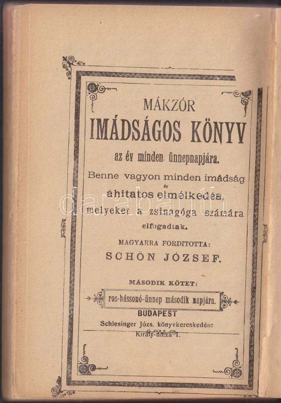 cca 1900 Mákzór imádságos könyv az év minden napjára ford.: Schön József, Schlesinger József. Héber-magyar. Kissé laza egészvászon kötésben / Hebrew Hungarian prayerbook