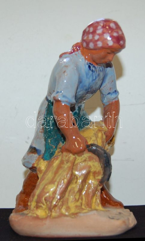 Beschreibung: Endrő Margit (1899-1986): Arató lány, mázas karcagi kerámia, jelzett, 17 cm