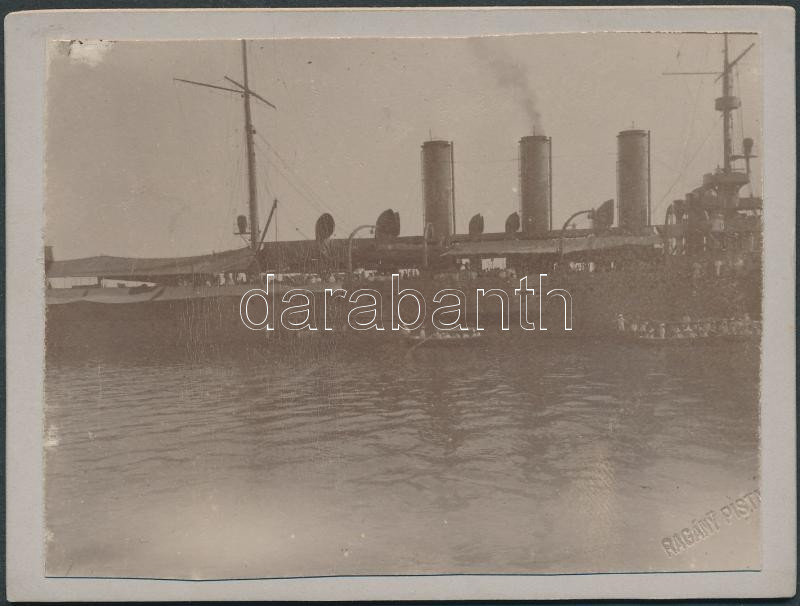 Beschreibung: cca 1910 S.M.S. St Georg osztrák-magyar hadihajó keményhátú fotó Ragány Pista fényképésztől / Austro-Hungarian warship St Georg.