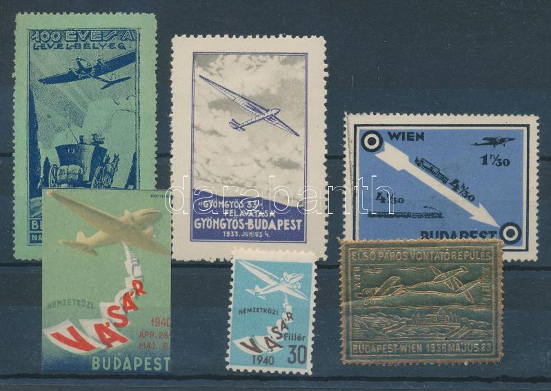 1933-1940 6 db Repülős levélzáró https://www.darabanth.com/de/154-Fernauktion/154.0/Ansichtskarten/Paraphilatelie~6000206/1933-1940-6-db-Repulos-levelzaro~II478790