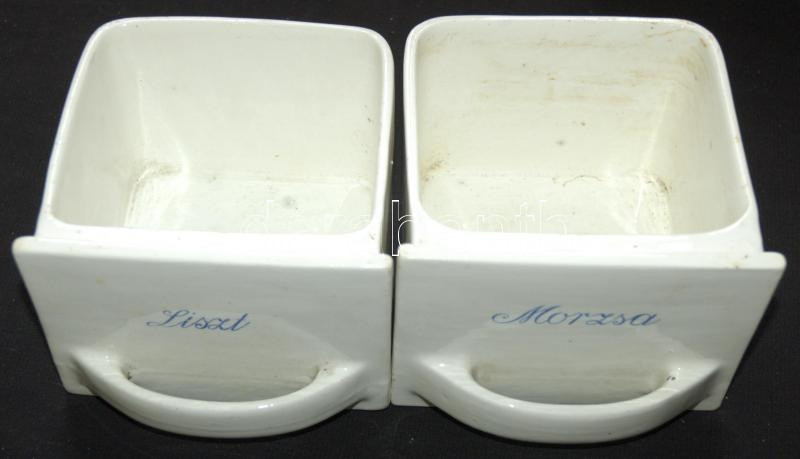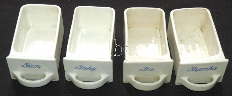 Beschreibung: 4db nagy és 4db kis méretű porcelán fűszeres fiók apró sérülésekkel + 3db kínai porcelán kistányér