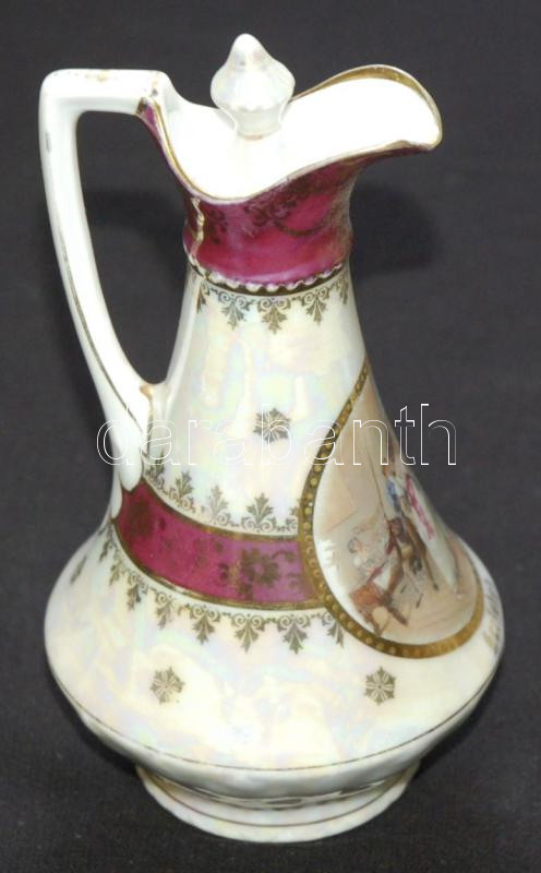 Beschreibung: cca 1900 Karlsbadi gyöngyházas porcelán kis kancsó dugóval 17cm