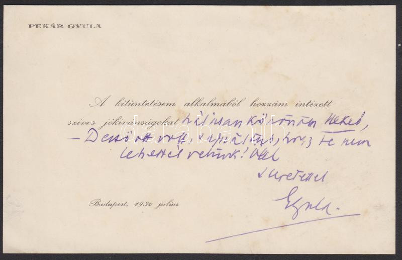 1930 Bp., Pekár Gyula(1867-1937) író, miniszter sorai és aláírása papí... https://www.darabanth.com/de/154-Fernauktion/154.0/Ansichtskarten/Signatur~6000307/1930-Bp-Pekar-Gyula1867-1937-iro-miniszter-sorai-es-alairasa-papiron~II479013