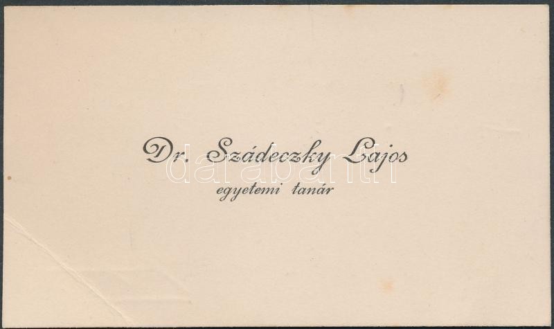 Beschreibung: Szádeczky-Kardoss Lajos történész, egyetemi tanár névjegye saját kézzel írt üdvözlő soraival.