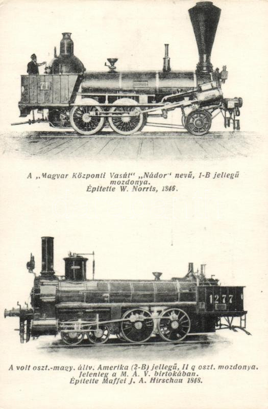 Magyar Központi Vasút ´Nádor´ 1-B, Osztrák-Magyar állv. ´Amerika´ 2-B ... https://www.darabanth.com/de/154-Fernauktion/154.0/Ansichtskarten/Zug~6000304/Magyar-Kozponti-Vasut-Nador-1-B-Osztrak-Magyar-allv-Amerika-2-B-IIq~II480263