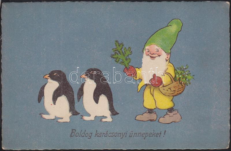 Christmas, dwarf, penguins litho https://www.darabanth.com/de/154-Fernauktion/154.0/Ansichtskarten/Zwerg~6000298/Christmas-dwarf-penguins-litho~II478966