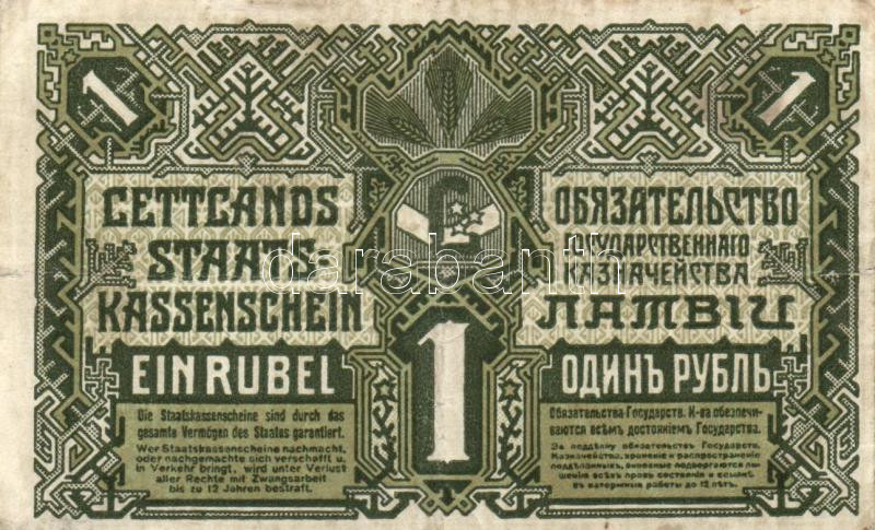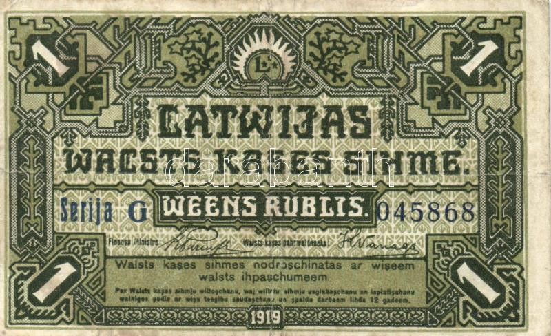 Latvia 1919. 1 Rublis "G" C:VF https://www.darabanth.com/de/154-Fernauktion/154.0/Numismatik/Auslandische-Banknoten~6000319/Lettorszag-1919-1R-G-TII--3Cbr3ELatvia-1919-1-Rublis-G-CVF~II478508