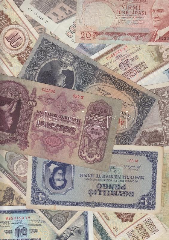 28db-ból álló vegyes bankjegy tétel, közte magyar pengők, Jugoszlávia, Lenygelország, Olaszország, Törökország, Bulgária pénzei T:vegyes