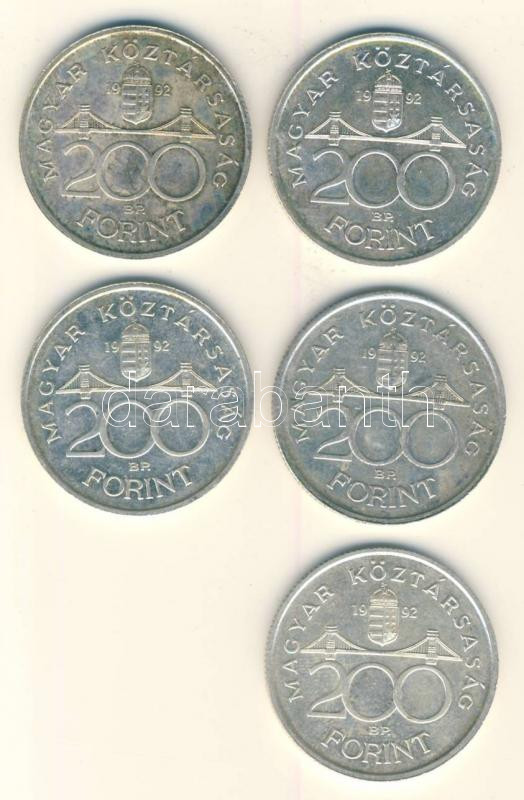1992. 200Ft Ag "MNB" (5x) T:2,2- https://www.darabanth.com/de/154-Fernauktion/154.0/Numismatik/Ungarische-Munzen~6000316/1992-200Ft-Ag-MNB-5x-T2-2-~II478035