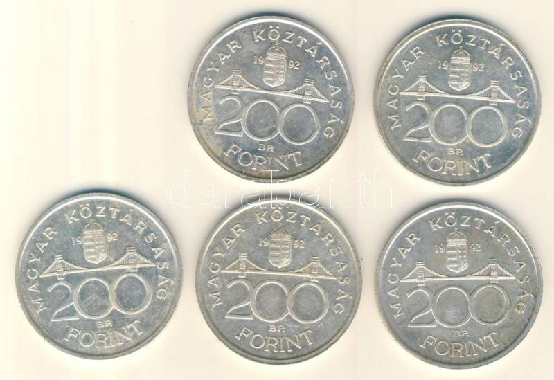 1992. 200Ft Ag "MNB" (5x) T:2,2- https://www.darabanth.com/de/154-Fernauktion/154.0/Numismatik/Ungarische-Munzen~6000316/1992-200Ft-Ag-MNB-5x-T2-2-~II478036