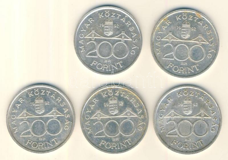 1992. 200Ft Ag "MNB" (5x) T:2,2- https://www.darabanth.com/de/154-Fernauktion/154.0/Numismatik/Ungarische-Munzen~6000316/1992-200Ft-Ag-MNB-5x-T2-2-~II478038