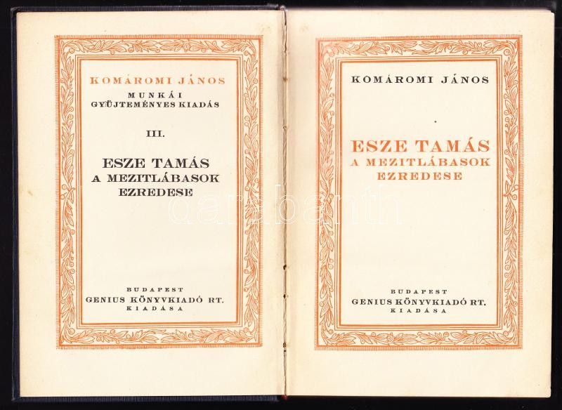 1930 Komáromi János munkái III. - Esze Tamás A mezítlábasok ezredese, Genius Kiadó Bp., aranyozott dombornyomott vászonkötésben, szép állapotban
