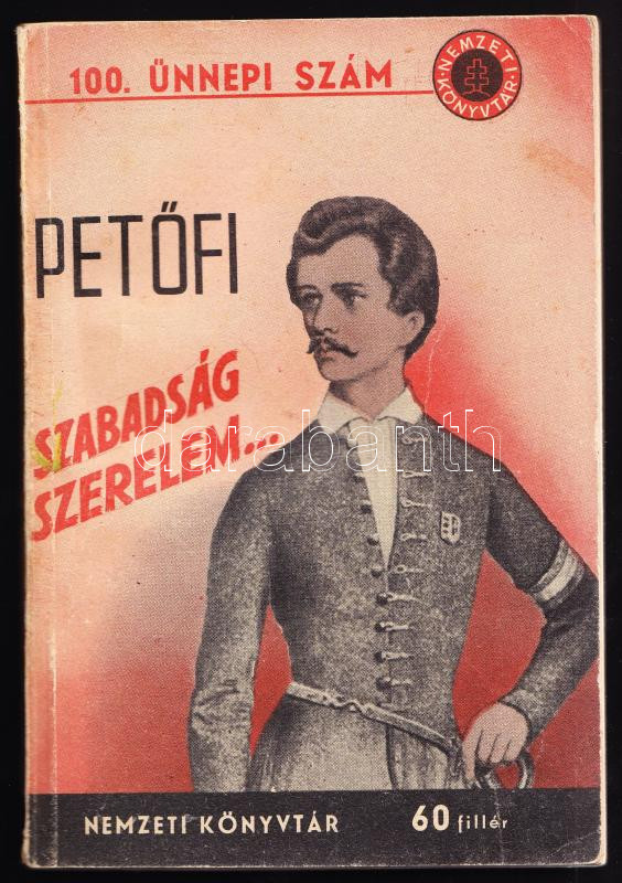 1943 Petőfi Sándor: Szabadság szerelem..., A Nemzeti Könyvtár 100. jubileumi kiadása, úti levelekkel, politikai cikkekkel, papírkötésben, megviselt állapotban