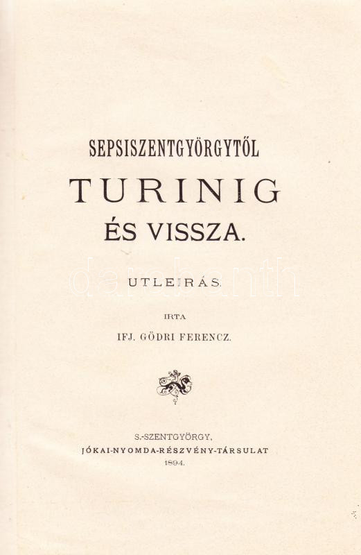 Gödri Ferencz: Sepsiszentgyörgytõl Turinig és vissza. Utleírás. S... https://www.darabanth.com/de/155-Fernauktion/155.0/Andere-Sammelgebiete/Bucher-Reisen-Stadte~5000323/Godri-Ferencz-Sepsiszentgyorgyt23245-l-Turinig-es-vissza-Utleiras-S-Szentgyorgy-1894-Jok~II485227