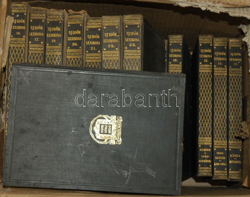 Új idők lexikona I.-XXIV. kötet. (hiány: 5,18,24) (kétszer 6,9.), Signer és Wolfner Irodalmi intézet, Budapest Egységes, aranyozott kiadói egészvászon kötésben általában a legtöbb kötet az eredeti megrendelői kartonborítékban!