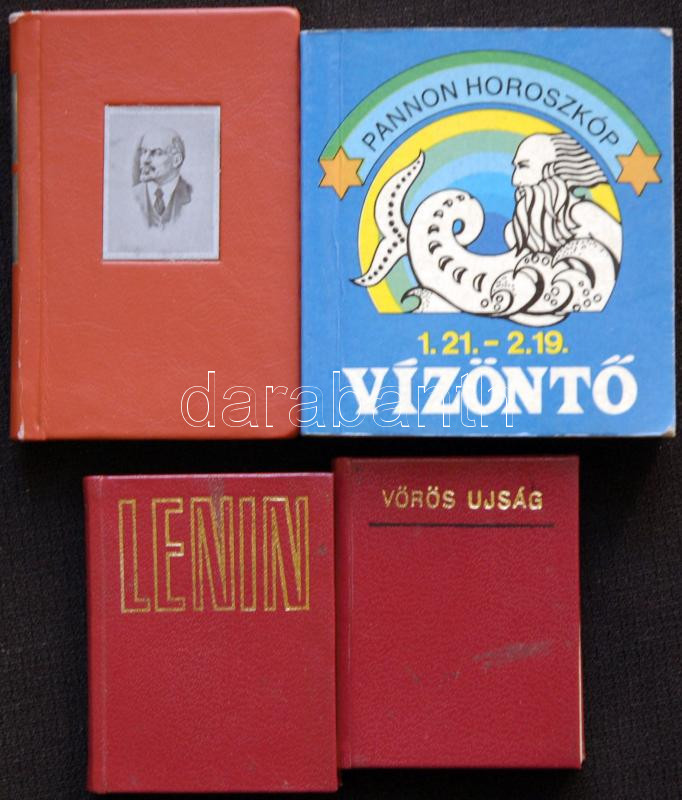 Beschreibung: 4db klf témájú minikönyv: Vörös újság, 2db Lenin, Vízöntő