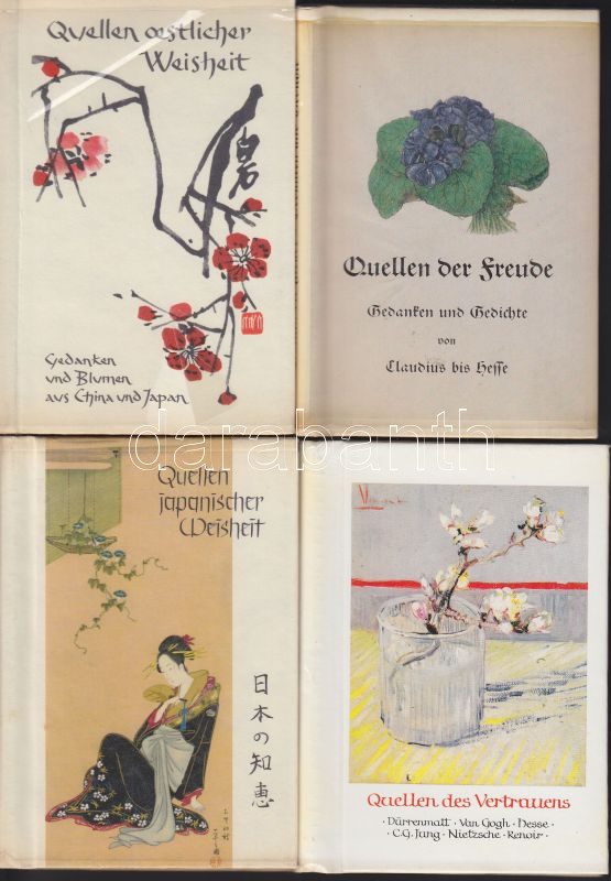 A bölcsesség, békesség, bizalom forrása: 2 db kisméretű, díszkiadású könyv, merített papíron. Német nyelven / The source of wisdom, peace, trust. 2 books in exclusive layout
