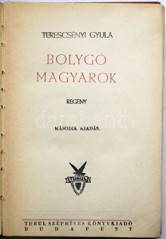 Terescsényi Gyula: Bolygó magyarok. 2. kiadás Bp., Turul szépmíves céh... https://www.darabanth.com/de/155-Fernauktion/155.0/Andere-Sammelgebiete/Bucher-Sonstige-Raritaten~5000362/Terescsenyi-Gyula-Bolygo-magyarok-2-kiadas-Bp-Turul-szepmives-ceh-Aranyozott-felvaszon~II466151