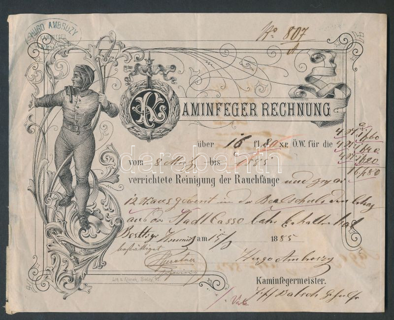1885 Kéményseprő számla 7kr okmánybélyeggel / Chimneysweep invoice 21x... https://www.darabanth.com/de/155-Fernauktion/155.0/Andere-Sammelgebiete/Dokument~5000309/1885-Kemenysepro-szamla-7kr-okmanybelyeggel-Chimneysweep-invoice-21x16-cm~II463666