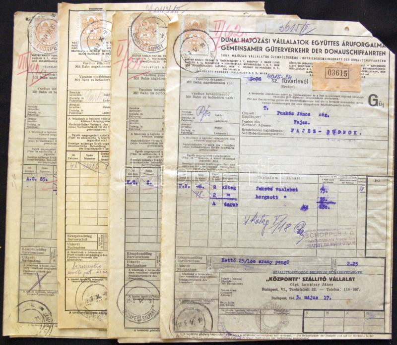 Beschreibung: 1943. "Dunai Hajózási Vállalatok Együttes Áruforgalma" fuvarlevelei 4db, okmánybélyeggel