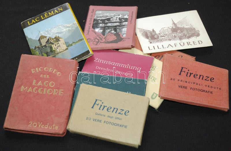 Beschreibung: 10 db, főként háború előtti és 50-es évekből származó külföldi leporello / 10 mostly pre 1960 leporello from all over Europe