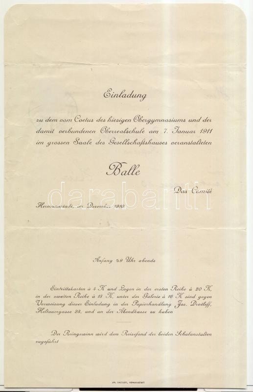 1904/1910 2db nagyszebeni báli meghívó német nyelven https://www.darabanth.com/de/155-Fernauktion/155.0/Andere-Sammelgebiete/Drucksachen~5000322/19041910-2db-nagyszebeni-bali-meghivo-nemet-nyelven~II463540