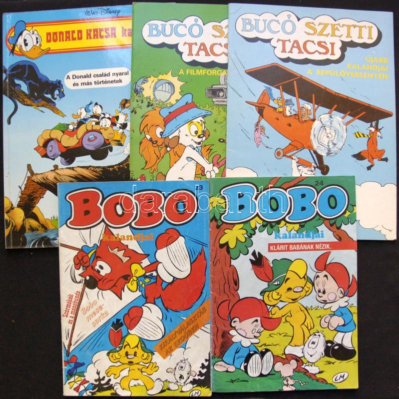 Beschreibung: 5db klf régi képregény: Bobo, Bucó-Szetti-Tacsi, Donald kacsa kalandjai