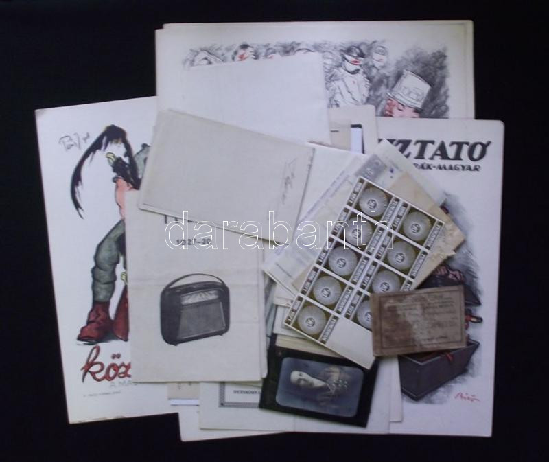 Beschreibung: Kis papÃrrégiség tétel: meghÃvó Anna-bálra, tagsági könyv, kis ima könyv, Kossuth Lajos levelének másolata + banki iratok, vasúti okmányok, Kner bizonyÃtvány + 5 db tanácsköztársasági plakát repró.