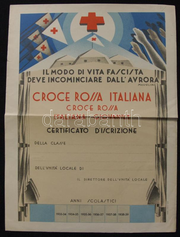 cca 1930 Olasz Vöröskereszt litho emléklap Mussolini idézettel / Itali... https://www.darabanth.com/de/155-Fernauktion/155.0/Andere-Sammelgebiete/Drucksachen~5000322/cca-1930-Olasz-Voroskereszt-litho-emleklap-Mussolini-idezettel-Italian-Litho-conmemorative-car~II460416