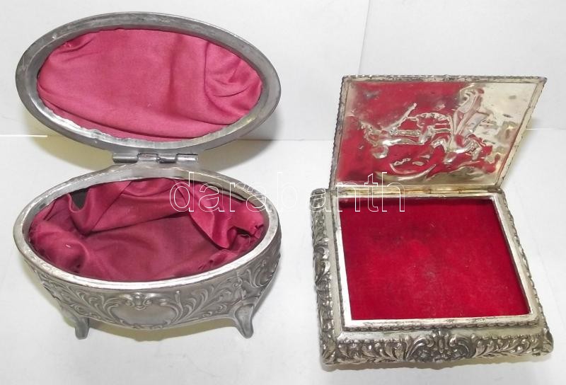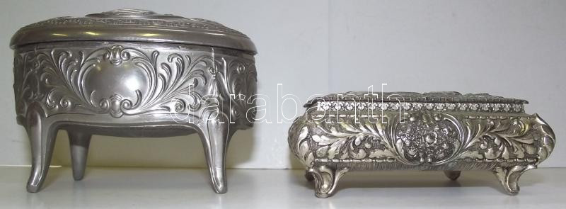 Beschreibung: 2db gazdagon díszített ón ékszeres doboz (12x10x5cm, 13x8x9cm)