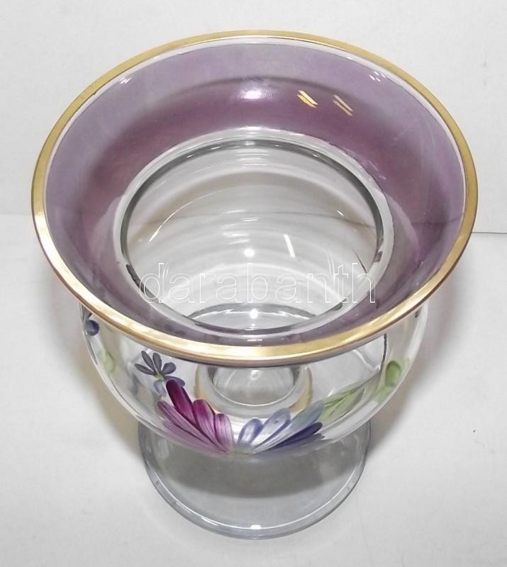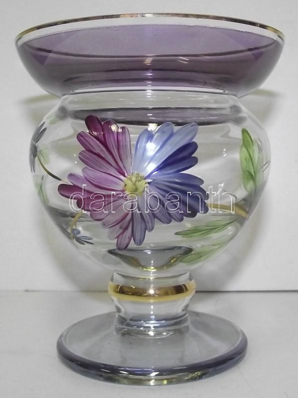 Beschreibung: Kézzel festett szakított üveg vázácska 12cm magas
