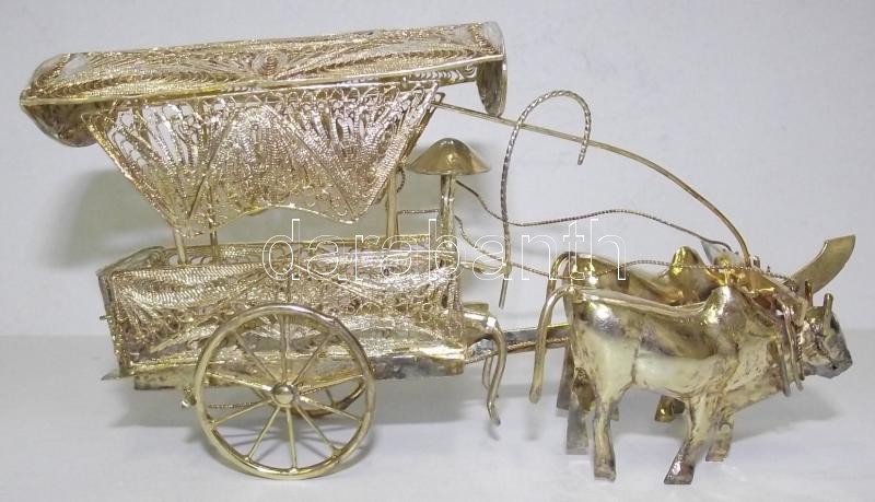 Beschreibung: Szépen megmunkált aranyozott fém dísztárgy zárható dobozban üveg búrával 18x10x7cm
