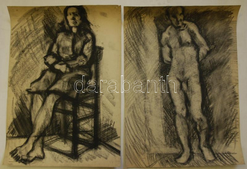 Beschreibung: 2db jelzés nélküli akt szénrajz 43x61cm
