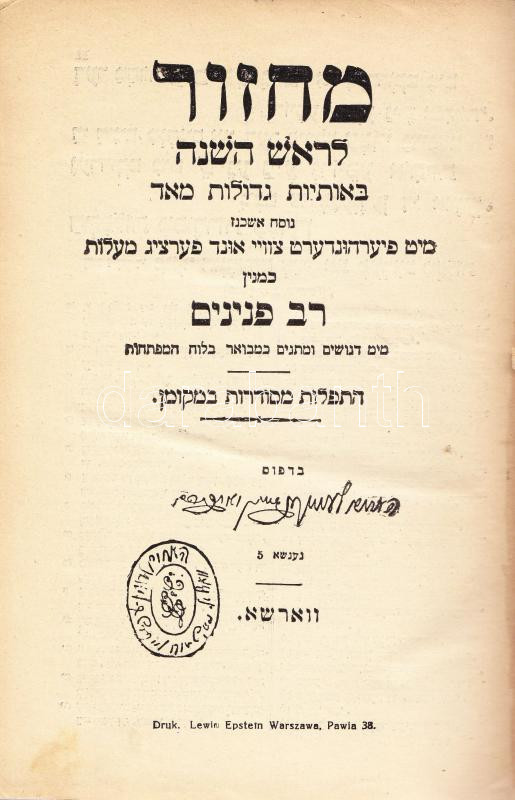 cca 1920 Varsóban nyomtatott héber nyelvű imakönyv vaknyomott egészvás... https://www.darabanth.com/de/155-Fernauktion/155.0/Andere-Sammelgebiete/Judaica~5000320/cca-1920-Varsoban-nyomtatott-heber-nyelvu-imakonyv-vaknyomott-egeszvaszon-kotesben-Hebrew-~II484496