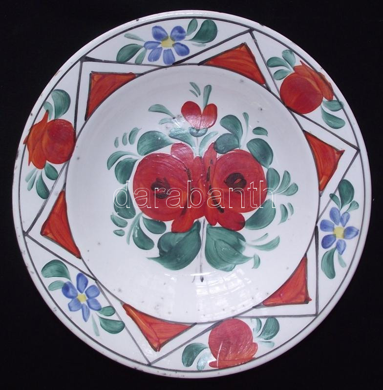 cca 1900 Kézzel festett mázas Hollóházi kerámia falitányér benyomott h... https://www.darabanth.com/de/155-Fernauktion/155.0/Andere-Sammelgebiete/Keramiken~5000333/cca-1900-Kezzel-festett-mazas-Hollohazi-keramia-falitanyer-benyomott-hazas-jelzessel-d-24c~II486189