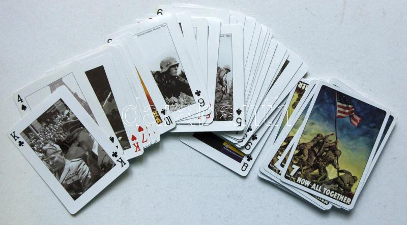 Beschreibung: Teljes pakli francia kártya 2 jokerrel háborús képekkel (Hitler, Mussolini, katonák, stb.)