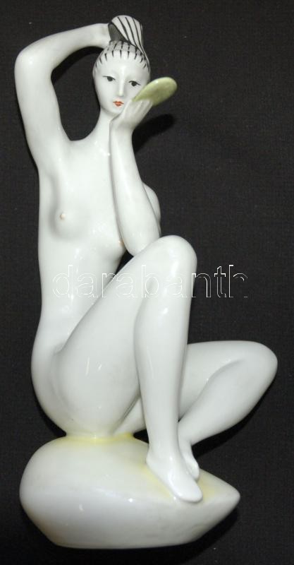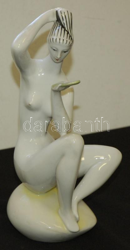 Beschreibung: Kézzel festett jelzett Zsolnay porcelán szépítkező lány figura / Handpainted Zsolnay chinaware figure 23cm