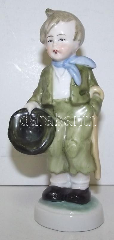 Beschreibung: cca 1903 Kézzel festett jelzett Bock-Wallendorf porcelán fiú figura / Handpainted Bock-Wallendorf chinaware figure 14cm