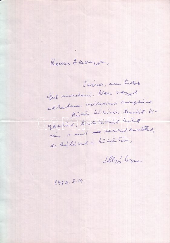 1980 Illyés Gyula író, költő saját kézzel írt levele https://www.darabanth.com/de/155-Fernauktion/155.0/Andere-Sammelgebiete/Signatur~5000312/1980-Illyes-Gyula-iro-kolto-sajat-kezzel-irt-levele~II422828