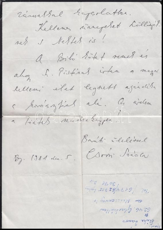 Beschreibung: 1981 Csoóri Sándor autográf levele az Bibó emlékkönyv kapcsán