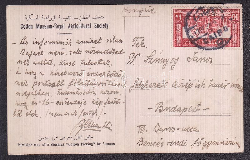 Beschreibung: Herman Lipót Munkácsy-díjas festőművész saját kezű aláírása egy Kairóból küldött képeslapon