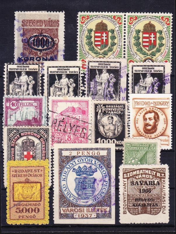 Beschreibung: 16db magyar segély és illetékbélyeg, pár levélzáró