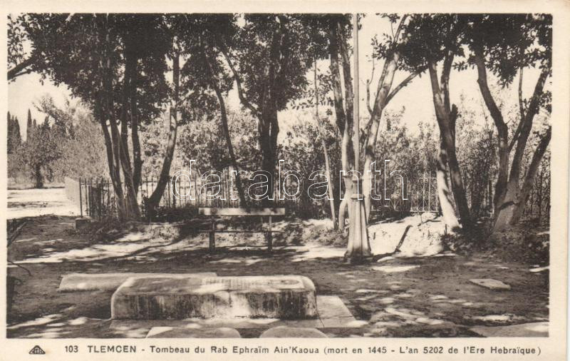Tlemcen Jewish cemetery, the tomb of Rabbi Ephraim Ain´Kaoua https://www.darabanth.com/de/155-Fernauktion/155.0/Ansichtskarten/Algerien~5000015/Tlemcen-Jewish-cemetery-the-tomb-of-Rabbi-Ephraim-AinKaoua~II483562