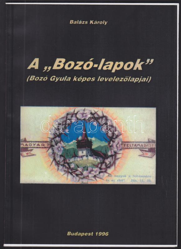 Balázs Károly: A "Bozó-lapok" (Bozó Gyula képes levelezőlapjai), Bp. 1... https://www.darabanth.com/de/155-Fernauktion/155.0/Ansichtskarten/Bucher-uber-Postkarten~5000001/Balazs-Karoly-A-Bozo-lapok-Bozo-Gyula-kepes-levelezolapjai-Bp-1996-masolat~II467930