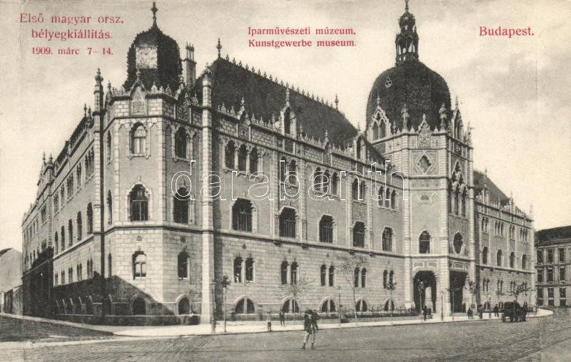 Beschreibung: Budapest IX. Iparművészeti múzeum, Bélyegkiállítás 1909, Divald So.Stpl