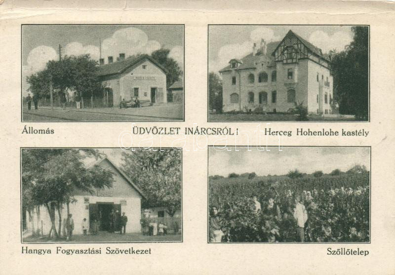 Inárcs vasútállomással, Hangyával és a Hohenlohe-kastéllyal (b) https://www.darabanth.com/de/155-Fernauktion/155.0/Ansichtskarten/Ungarn~5000005/Inarcs-vasutallomassal-Hangyaval-es-a-Hohenlohe-kastellyal-b~II483880