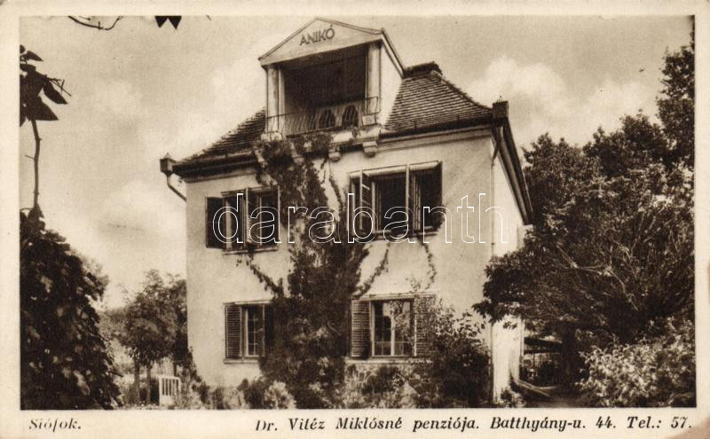Siófok Dr. Vitéz Miklósné penziója https://www.darabanth.com/de/155-Fernauktion/155.0/Ansichtskarten/Ungarn~5000005/Siofok-Dr-Vitez-Miklosne-penzioja~II483971