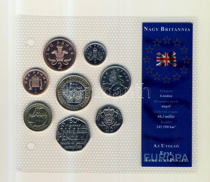 Nagy Britannia 2004-2005. 1p-2Ł 8klf darab "Az utolsó Font forgalmi pénzek" szettben T:1